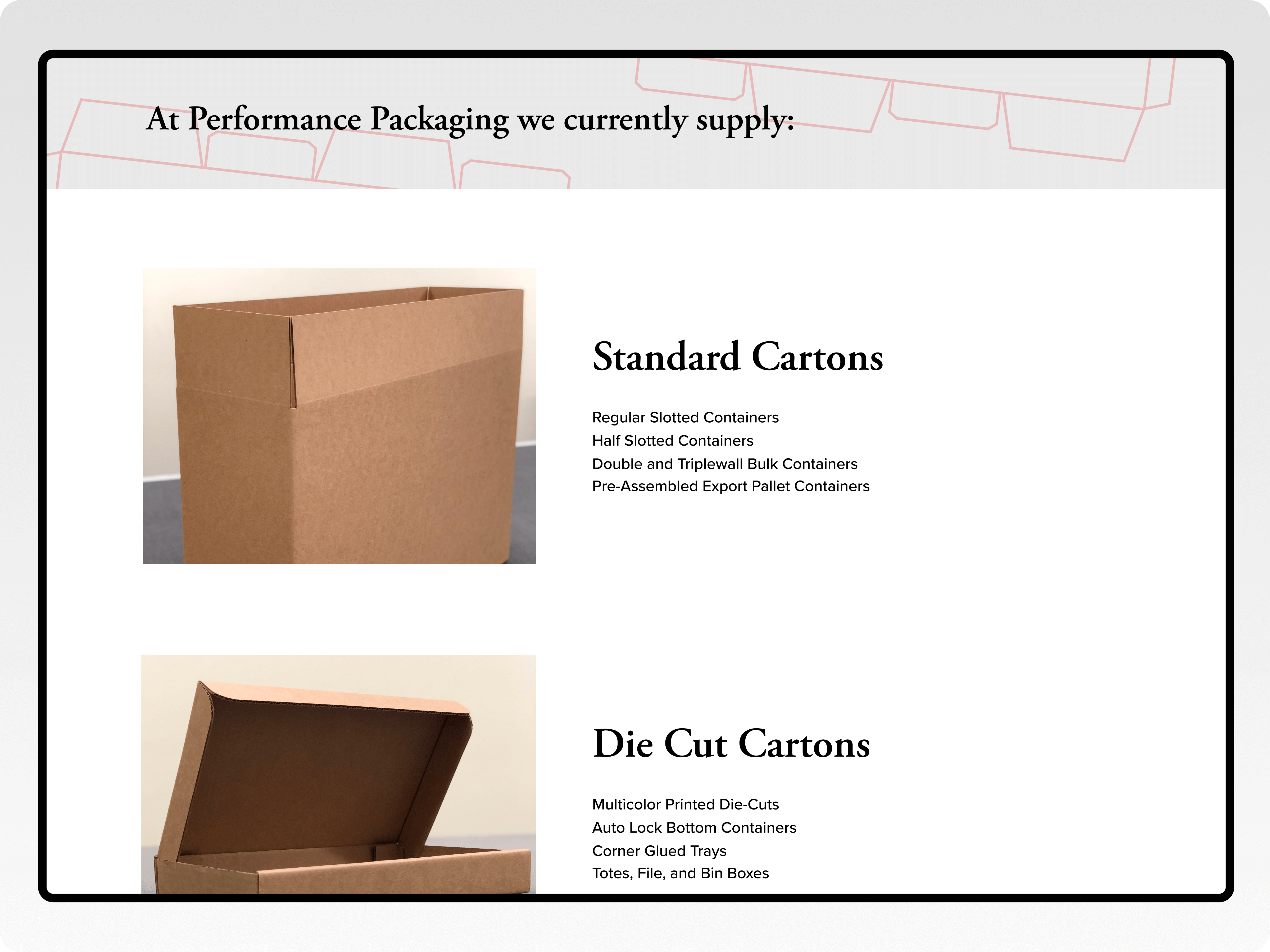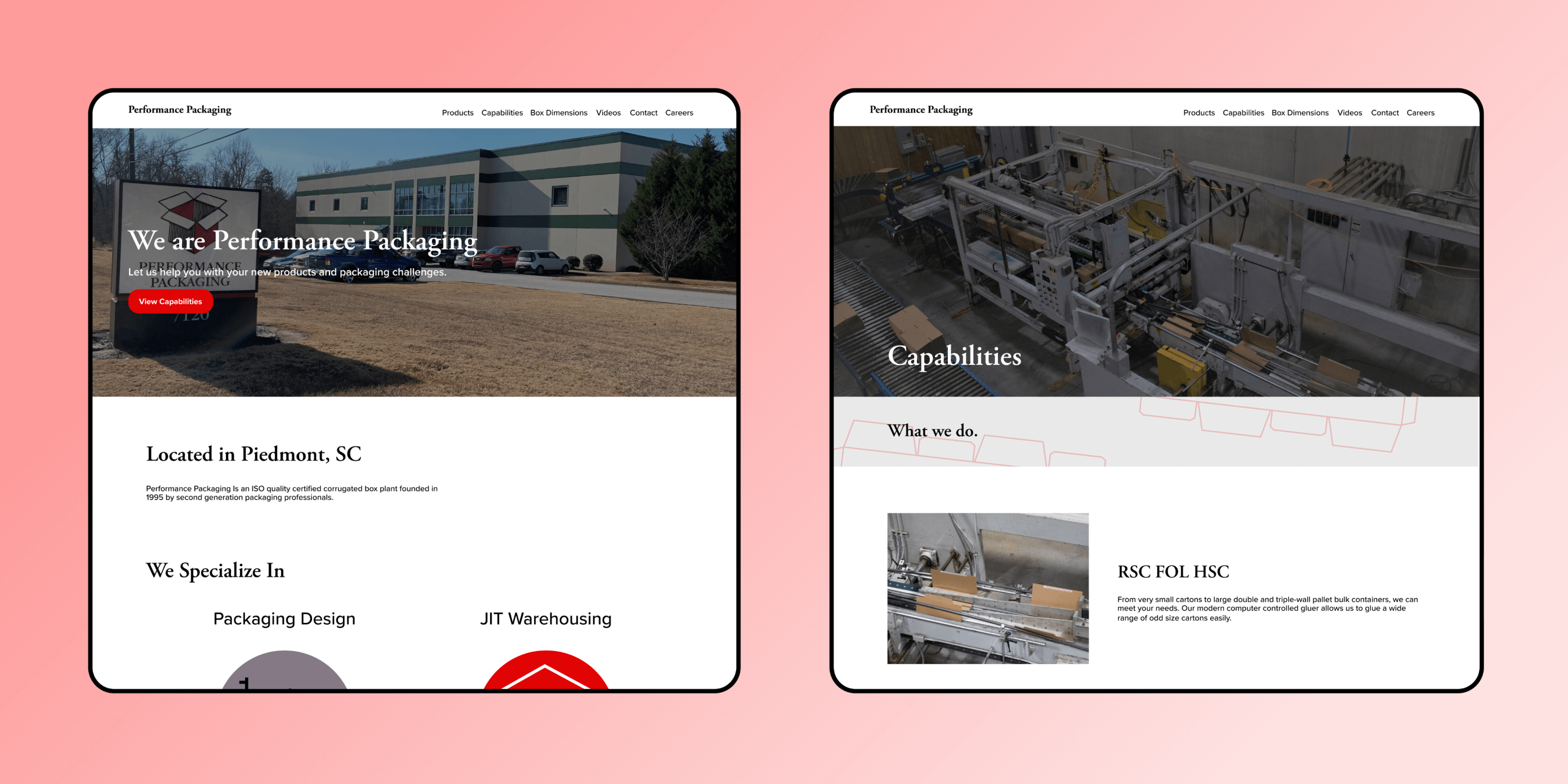 Performance Packing is a small packaging company based in Piedmont, SC. The website was the original since 2002. They wanted to modernize their website but also wanted to highlight their capabilities.