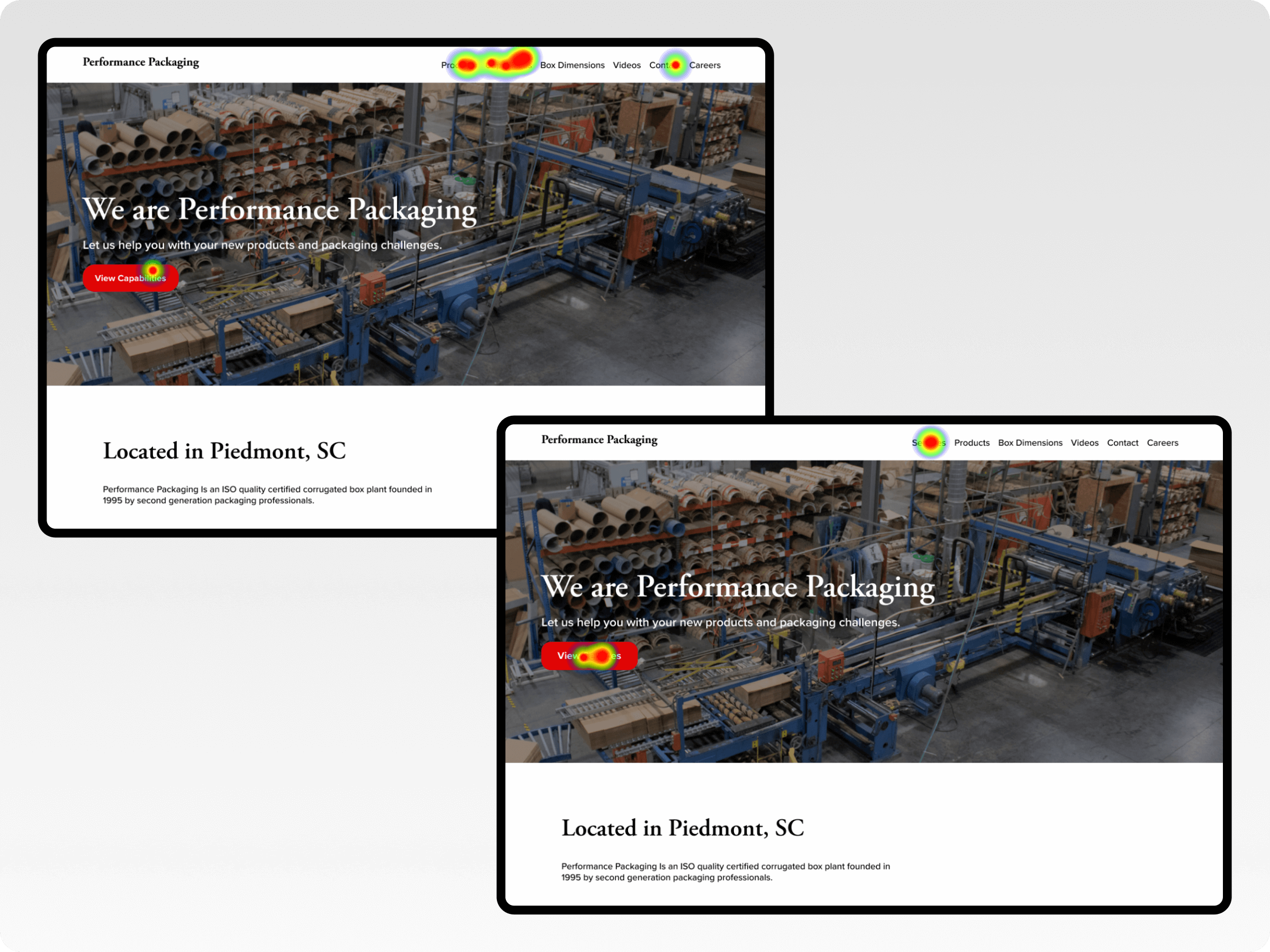 A test was run asking users “Where would you click to find out more about what the company does?” The 2 tests run tested “Capabilities” vs “Services.” There was less variability under “Services” which makes it the recommended choice as Performance Packaging requested to highlight capabilities.